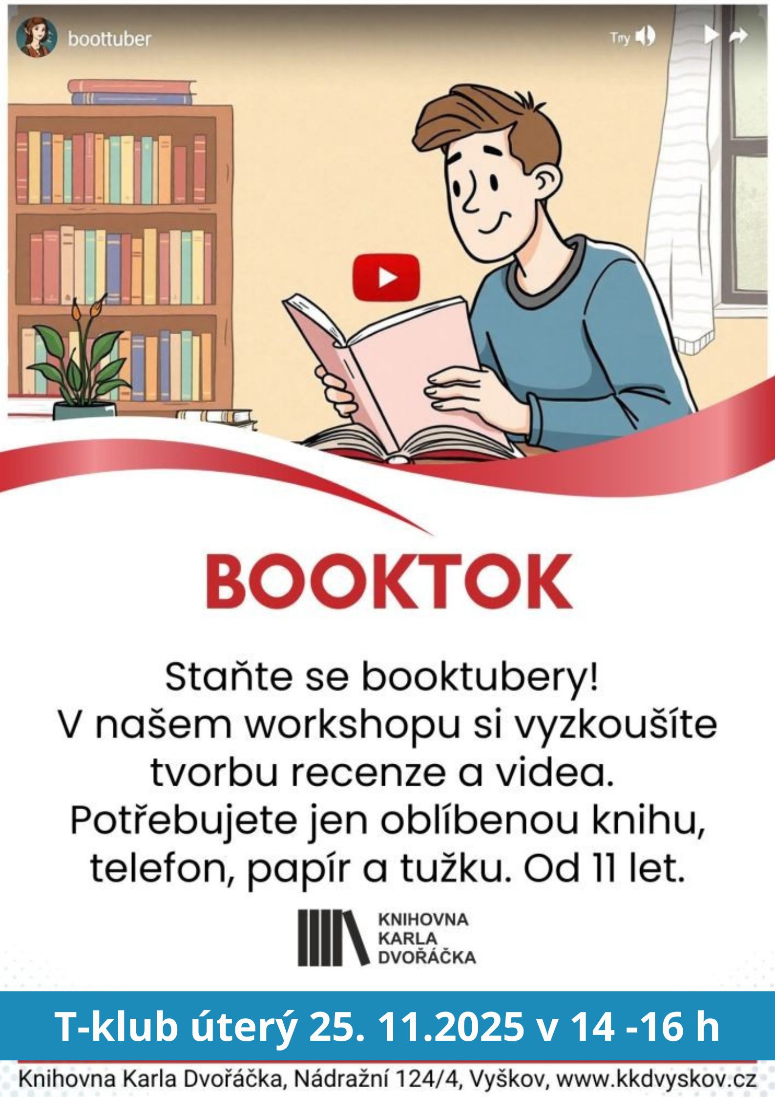V našem workshopu si vyzkoušíte tvorbu recenze a videa. Potřebujete jen oblíbenou knihu, telefon, papír a tužku. Od 11 let.