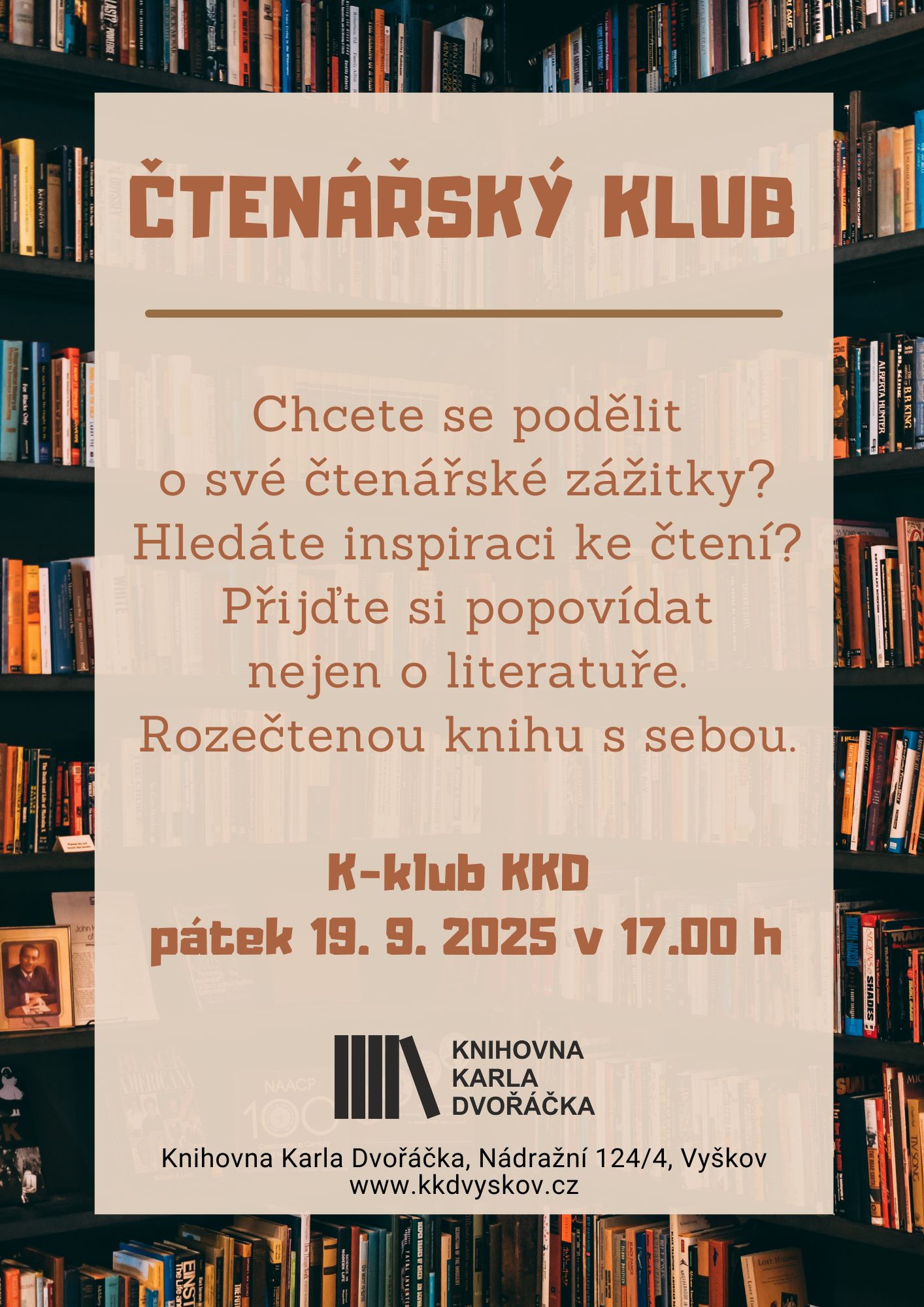 Chcete se podělit o své čtenářské zážitky? Hledáte inspiraci ke čtení? Přijďte si popovídat nejen o literatuře. Rozečtenou knihu s sebou.