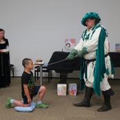 Dříve, než se jejich ramene dotkl těžký rytířský meč, musely děti prokázat své čtenářské schopnosti. Každé přečetlo krátkou hádanku, kterou ostatní lehce vyřešili. Poté dostaly Glejt čtenáře a poukaz na roční členství v Knihovně Karla Dvořáčka zdarma. Doufáme, že ho využije co nejvíce z nich.