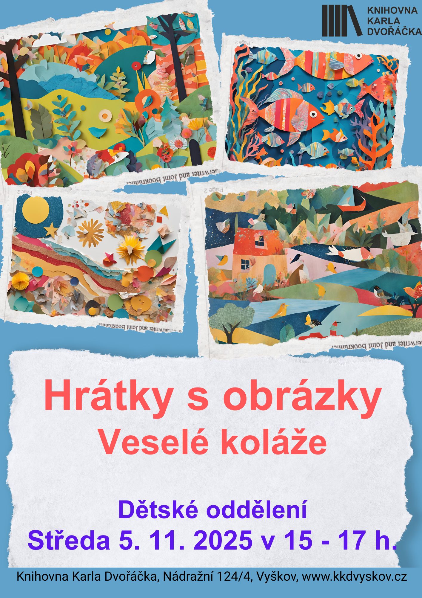 Veselé koláže, hrátky s obrázky Událost se konala 5.11.2025 15:00 - 17:00 v dětském oddělení. Publikováno: 7.10.2025 13:09