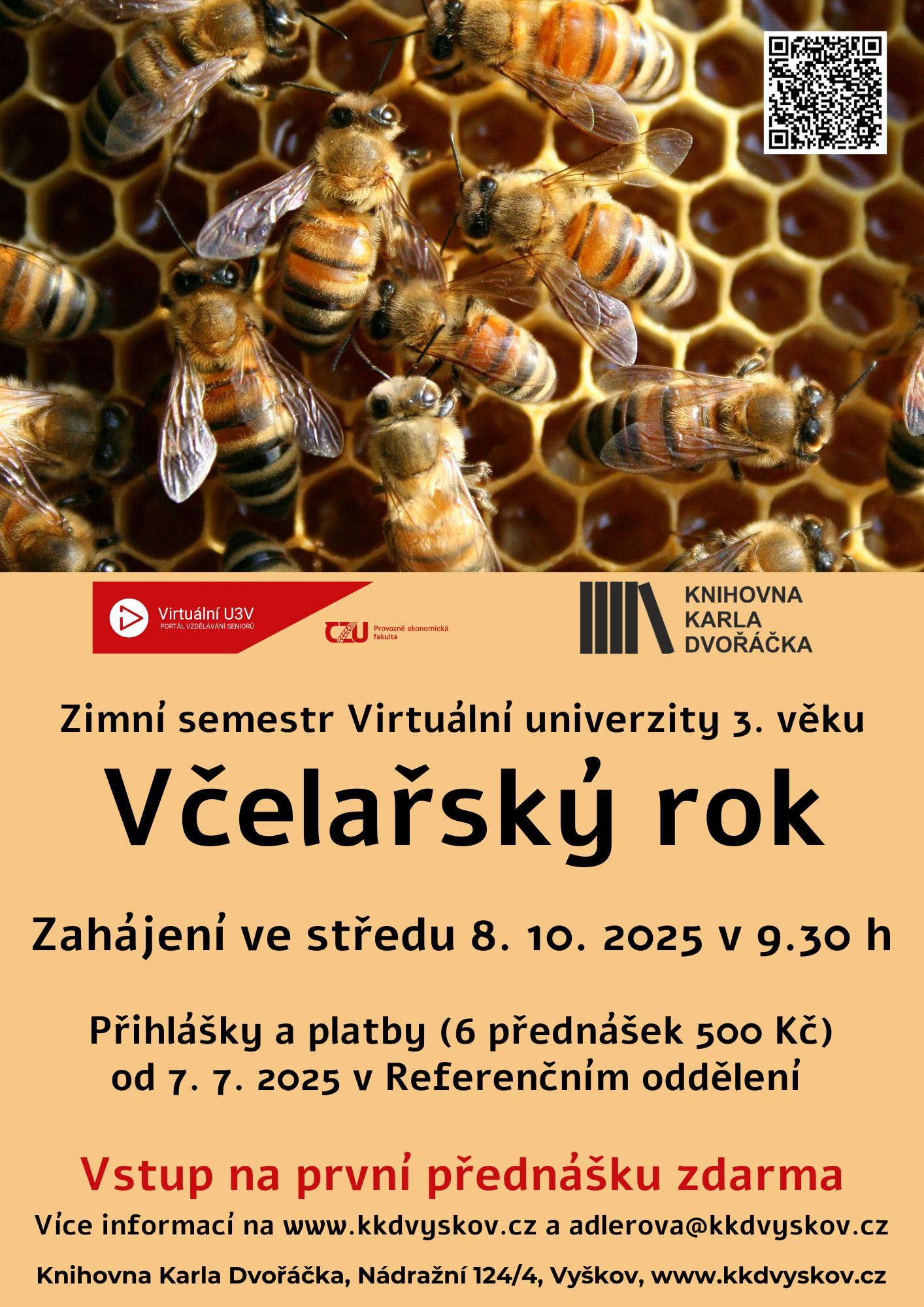 Zahájení zimního semestru. Téma Včelařský rok. Přihlášky a platby v referenčním oddělení. Poplatek za semestr (6 přednášek) 500 Kč. Účast na první přednášce zdarma. Více zde.