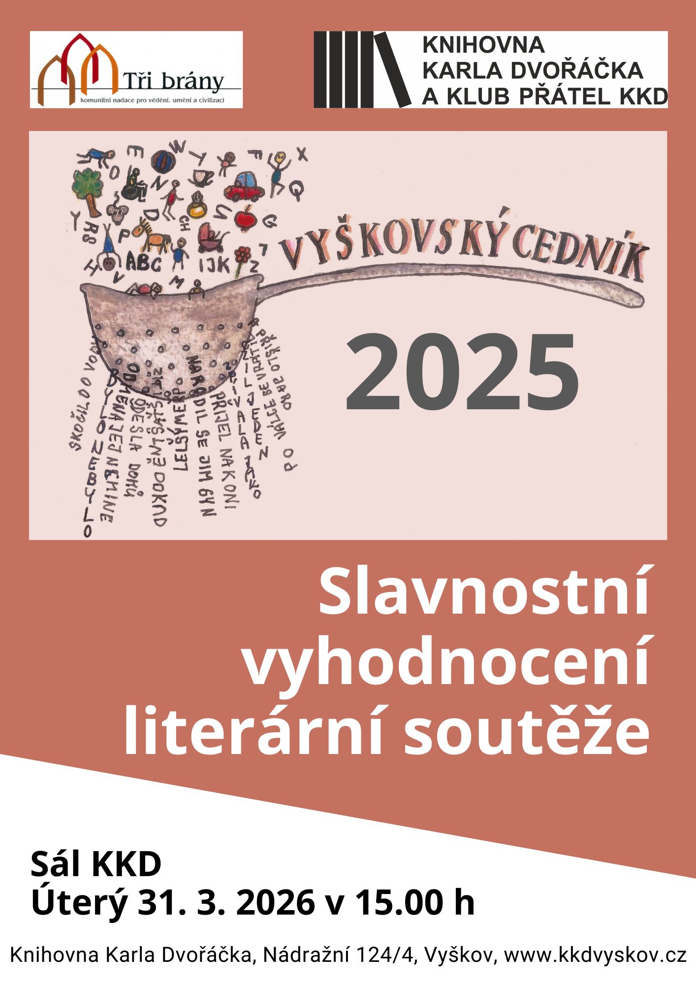 Vyhodnocení literární soutěže Vyškovský cedník 2025 Událost se bude konat 31.3.2026 15:00 - 16:30 ve velkém sále. Publikováno: 16.2.2026 7:57