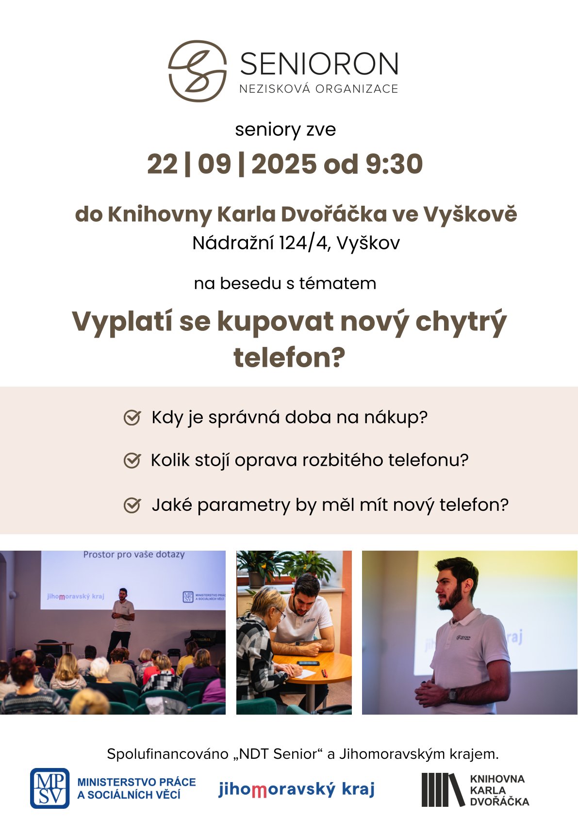 Kdy je správná doba na nákup? Jaké parametry by měl mít nový telefon? Beseda pro seniory.